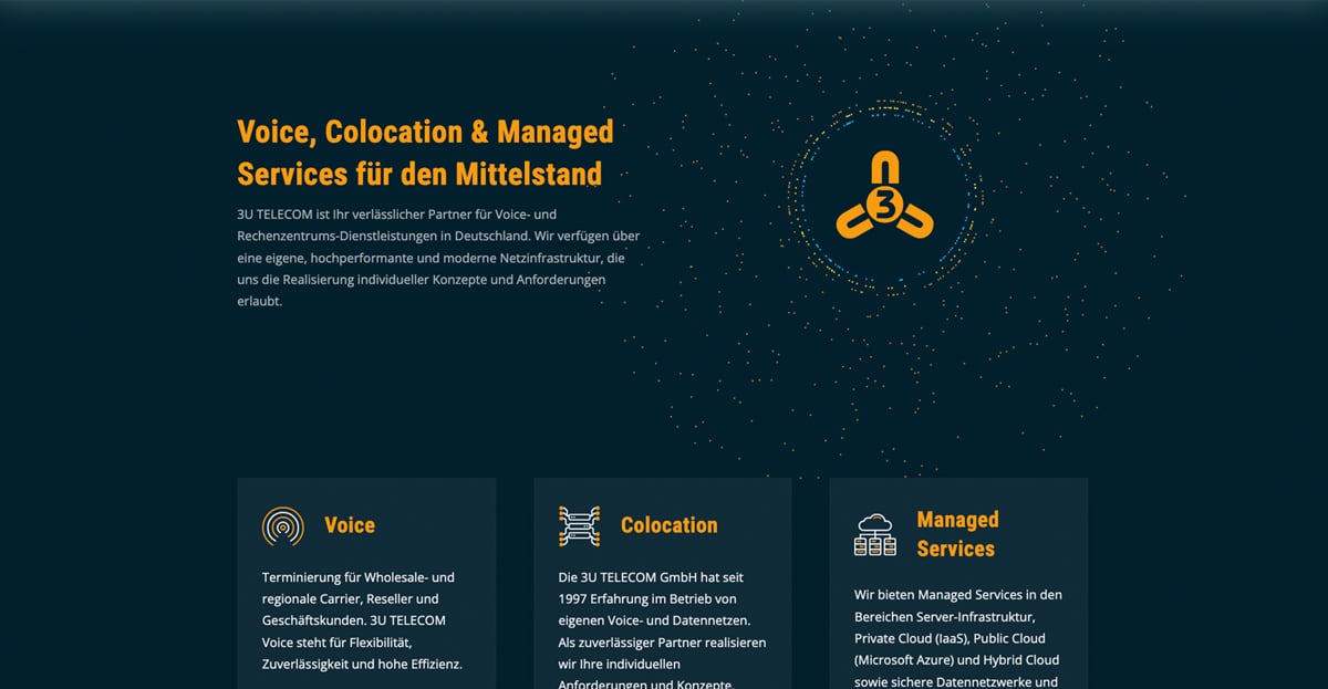 Parallel zur Marken- und Logoentwicklung entstand eine vollständig neu konzipierte Website für 3U TELECOM. Hier wird die Veränderung des Online-Auftritts sichtbar: